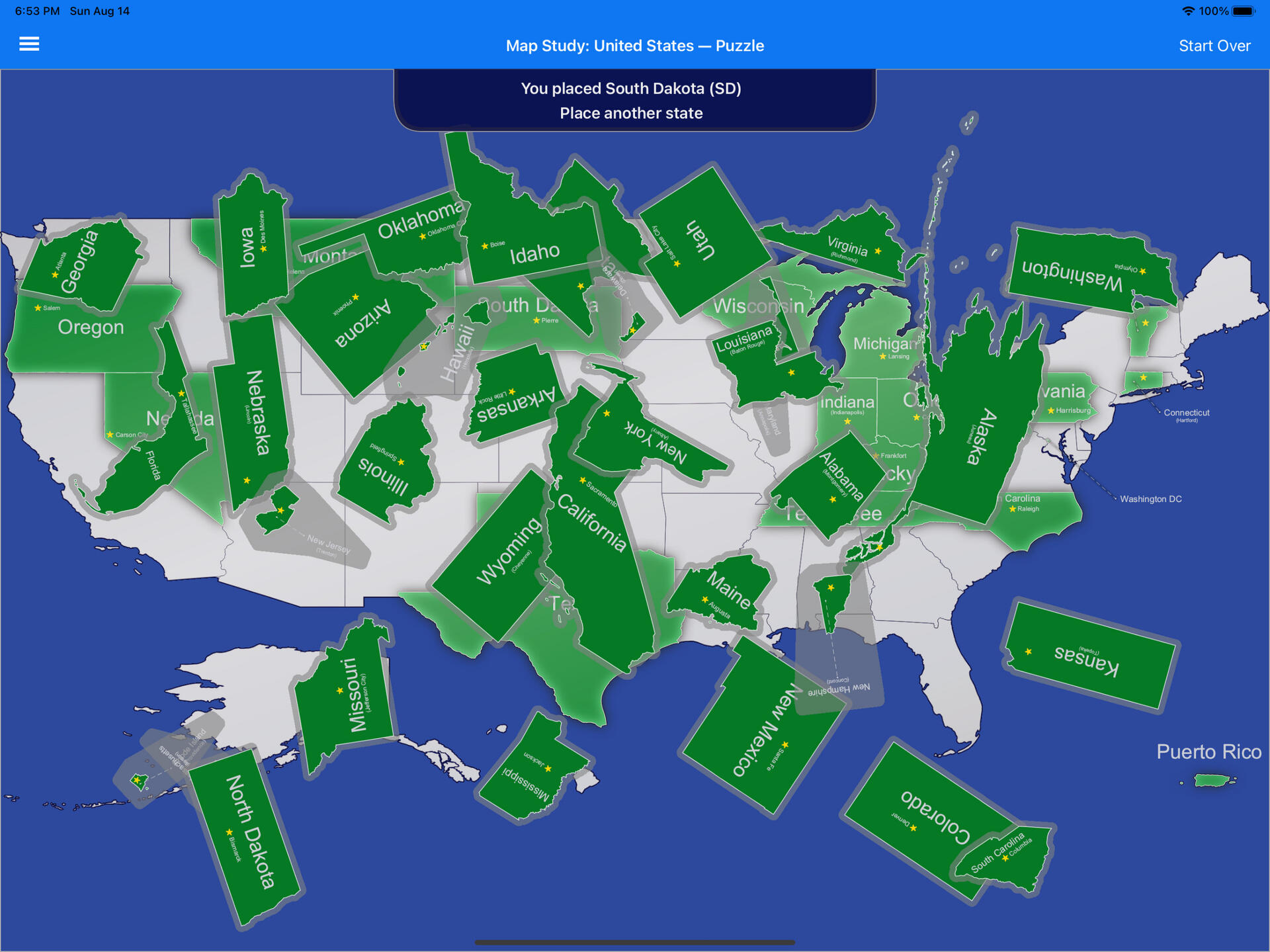 You can learn the location of the States and Capitals by exploring a map or putting together a puzzle.When you're ready to practice your spelling, you can take a test by filling in the names of States and Capitals on a blank map.